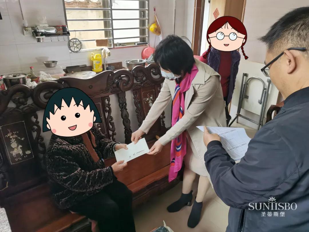 在各社区干部与熊猫体育集团副董事长梁碧霞女士的带领下,我们带着爱心满满的新年礼品与祝福,来到集团制造中心所在地的各个社区,并亲切慰问了他们日常生活、身体情况以及存在的具体困难,认真倾听他们的心声,叮嘱他们在疫情期间一定要做好防疫并保重身体。通过慰问互动,进一步拉近了企业与社区群众之间的距离,体现了圣蒂斯堡品牌企业知恩图报回馈社会的行动和初心,体现了一个具有大爱觉悟企业的责任心和使命感。